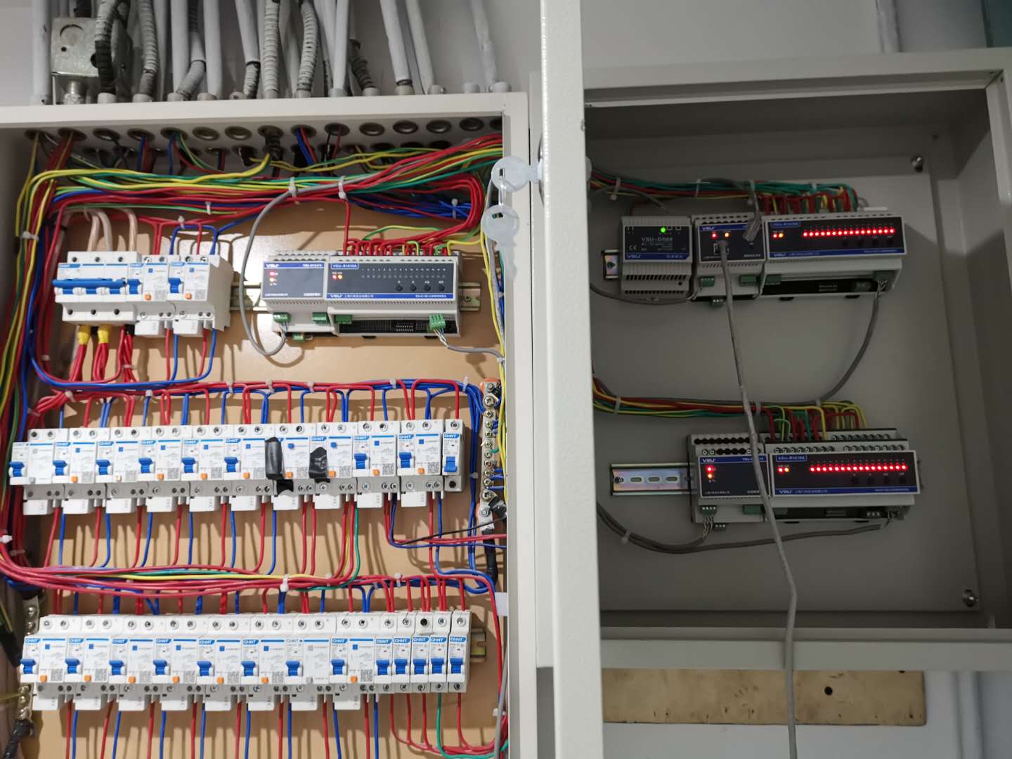 采用VSU總線型成套產(chǎn)品:智能網(wǎng)關(guān)主機(jī)控制整體,接受到手機(jī)或面板的指令輸送到開(kāi)關(guān)執(zhí)行模塊進(jìn)行遠(yuǎn)程開(kāi)關(guān)燈操作,采用的照明模塊是16路16A的,搭配DR60電源模塊、級(jí)聯(lián)模塊確保供電充沛??偩€的特點(diǎn)是連產(chǎn)品的調(diào)試檢測(cè)都不需要到現(xiàn)場(chǎng),遠(yuǎn)程即可將其調(diào)試就位。這個(gè)項(xiàng)目甚至連我司技術(shù)人員遠(yuǎn)程協(xié)助都不需要自己就安裝完成,可見(jiàn)其有多便于安裝,加上連接片用于串聯(lián)模塊,不是專業(yè)人員也可自主安裝使用。