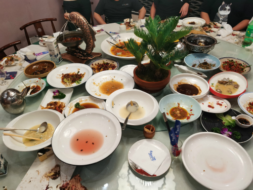 在推上蛋糕,唱完生日歌,送上祝福,人人酒足飯飽之后,才發(fā)現(xiàn)團(tuán)建活動來到了最高潮——小游戲。一個考驗(yàn)反應(yīng)力、專注力的小游戲,做錯或者沒反應(yīng)過來的人都得接受旁邊人幫自己夾的“一口”菜。真是一口還是半碗,小編就不說了,下面的圖片表明了事情的結(jié)果。
