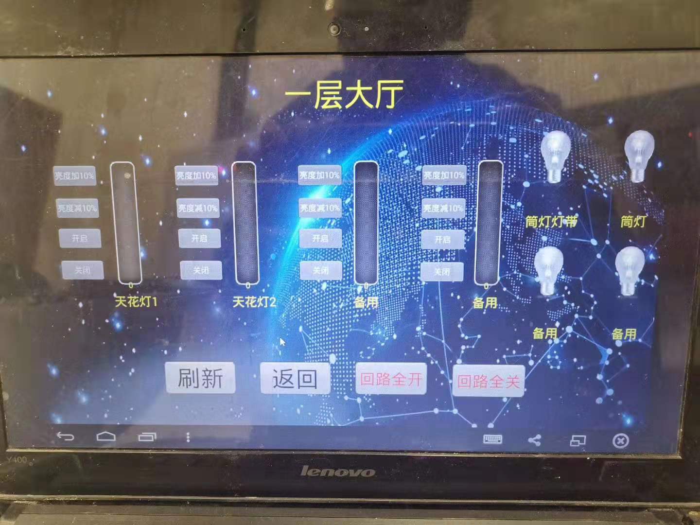 如下圖所示,控制場(chǎng)景亮度+10%,亮度-10%,一鍵開(kāi)啟關(guān)閉,回路單控。