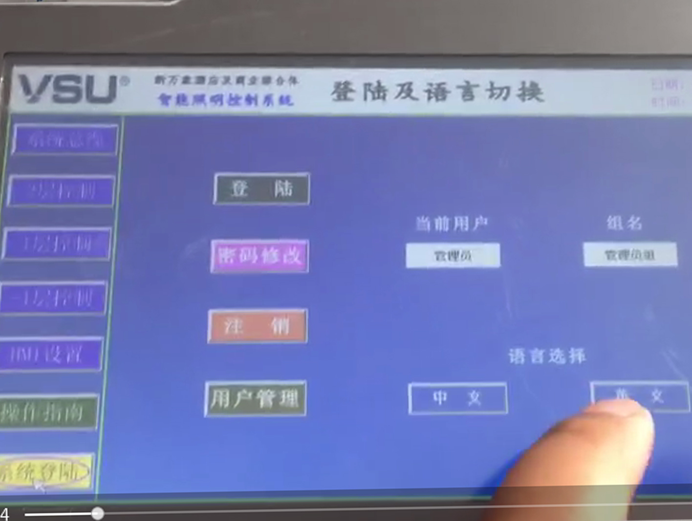 上圖為項(xiàng)目現(xiàn)場內(nèi)的電箱圖片,產(chǎn)品采用導(dǎo)軌式安裝,安裝簡單,普通電工即可完成。通過現(xiàn)場的觸摸屏可對控制終端任意操作,語言選擇中文/English,燈具單控全控,遠(yuǎn)程操控。并且可以將建筑內(nèi)的燈具開關(guān)狀態(tài)了如指掌,避免疏忽管理,導(dǎo)致電能耗上升情況的發(fā)生。