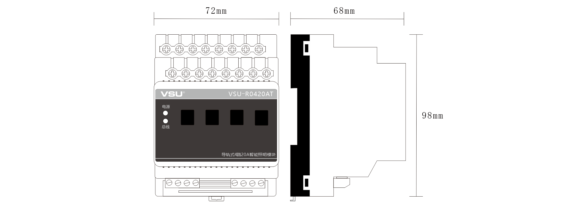 1,標準導(dǎo)軌式安裝占4個模數(shù)位;
