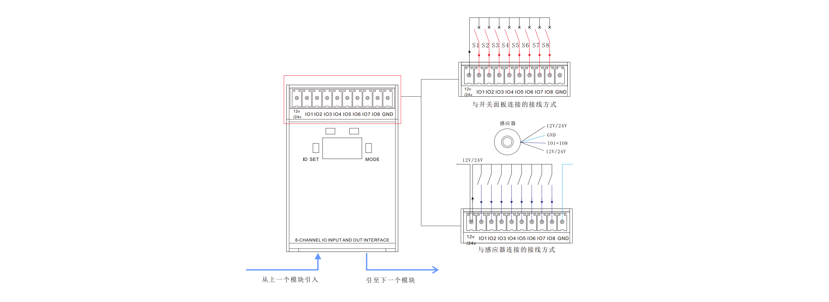 1.提供8路IO輸入接口,可接機械按鍵和門磁、人感等IO輸入信號,識別按鍵短按按下,短按松開或長按,長按松開嵌入總線;