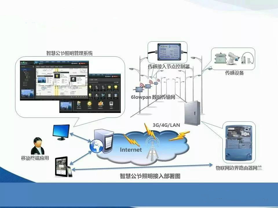 智慧照明又可以叫智慧公共照明管理平臺、智能路燈或智慧路燈,是根據(jù)運用專業(yè)、高效、可靠的電力線載波通訊技術和無線GPRS/CDMA通訊技術等,實現(xiàn)對路燈的遠程集中控制系統(tǒng)與管理方法,具備根據(jù)···